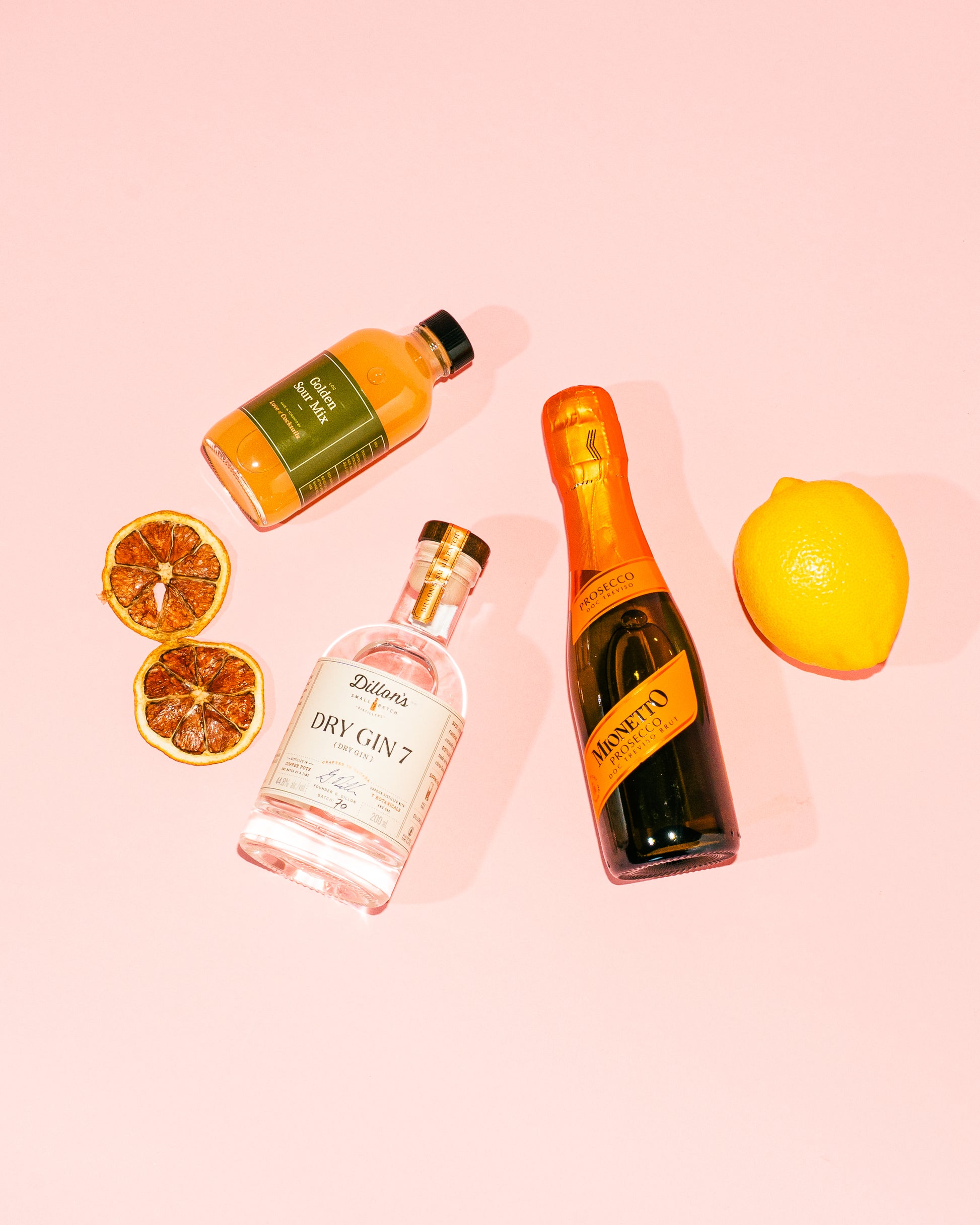 750ml Dillon's Dry Gin 7 & 750ml Mionetto Prosecco serves 8 full cocktails (2 of each recipe)
