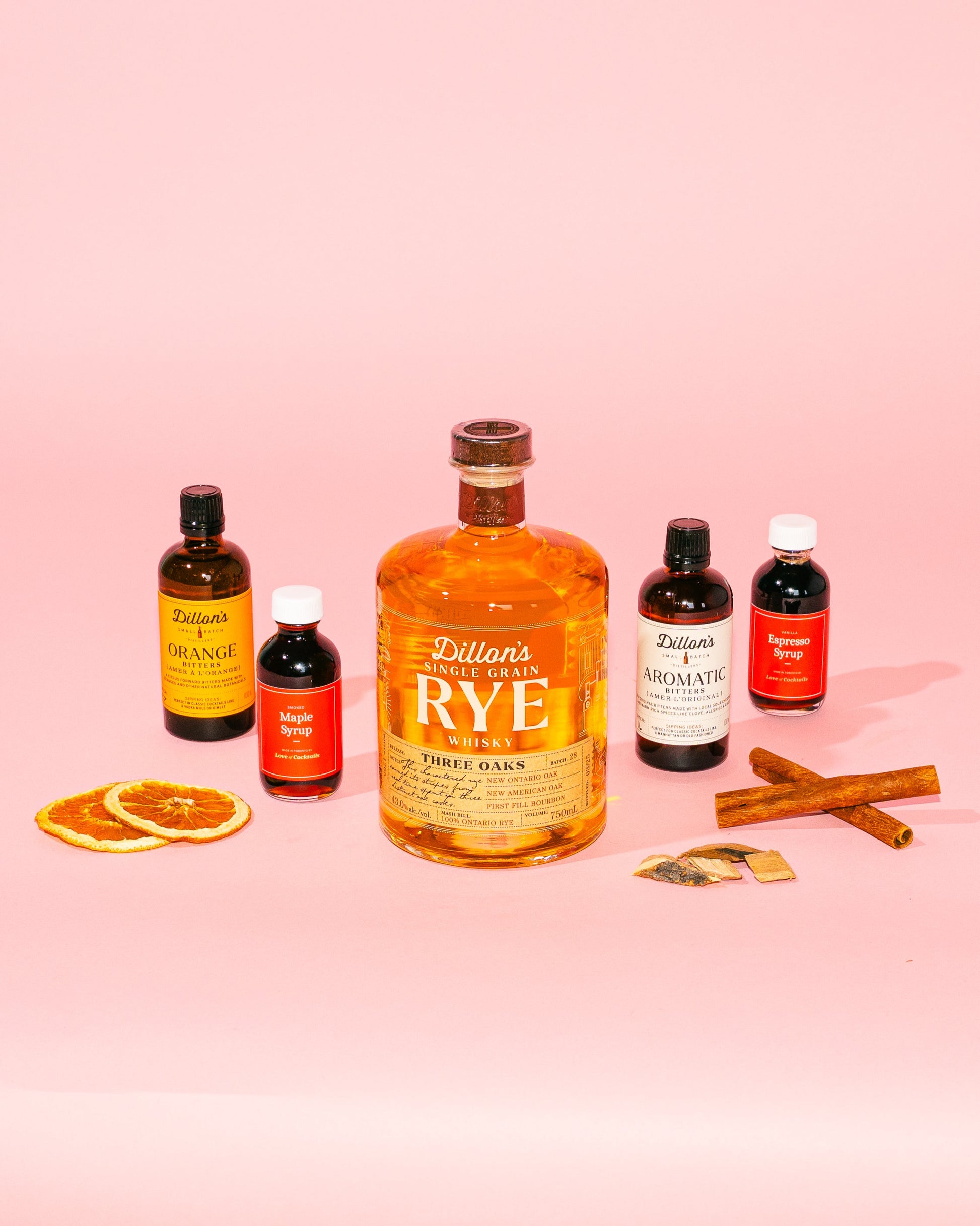 For the Fashioned Lovers, enjoy our custom cocktail kit with all the ingredients to make 4 or 12 Old Fashioned cocktails ( 2 variations) with a bottle of Dillon's Rye Whisky!