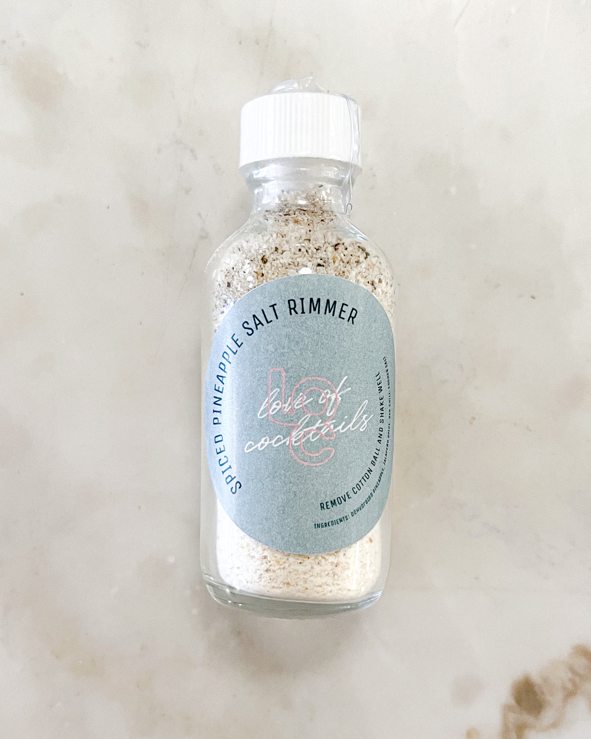 Ingredients: kosher salt, dehydrated pineapple, dehydrated jalapeños, dehydrated limes